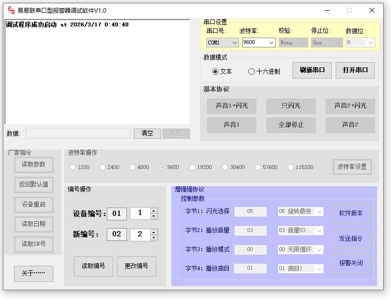 RS485/USB/RS232声光报警器测试专用软件